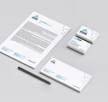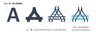 Le « A » de « AFAM » est transformé en symbole, redessiné en rails qui se croisent pour suggérer l’univers ferroviaire bien sûr mais aussi pour évoquer l’idée d’ensemble (de société) et de multiples (projets, acteurs commerciales).