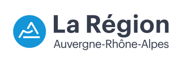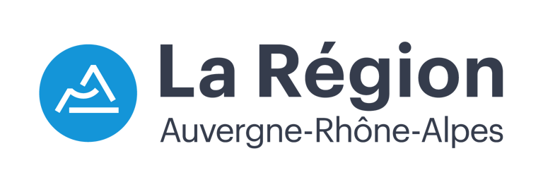 La pastille de la Région a été apposée au centre pour affirmer le porteur de la SPL. Aussi, les couleurs et la typo utilisées sont celles de la charte de la Région Auvergne-Rhône-Alpes.