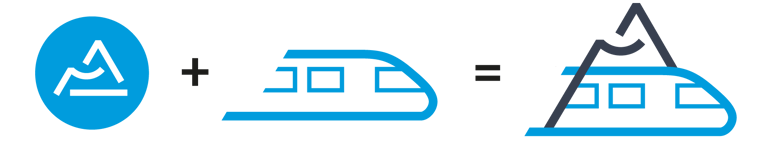 Ainsi, ma proposition était de reprendre des éléments du logo de la région en y intégrant un train. Ce dernier semble sortir d’un tunnel niché dans les montagnes.