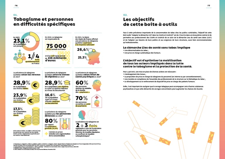 Face à cette prévalence importante de la consommation de tabac chez les publics vulnérables, l’objectif de cette BAO “Adapter la démarche LSST dans les CSAPA et CAARUD” est de s’inscrire dans un écosystème central et de permettre aux professionnels des CSAPA et CAARUD de se saisir de la démarche Lieu de santé sans tabac (LSST) et de l’adapter aux besoins de leurs publics et aux exigences de leurs structures, aussi bien environnementales qu’institutionnelles.