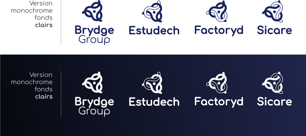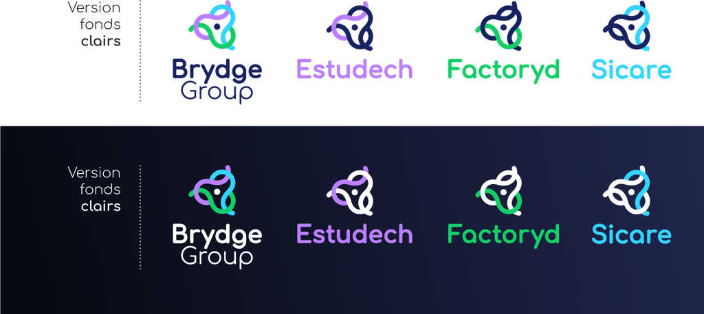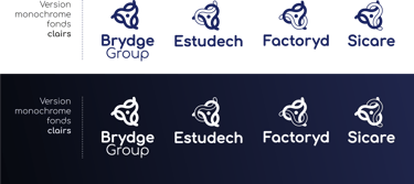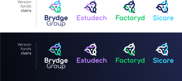 Une couleur par structure (Estudech, Factoryd, Sicare) et les 3 couleurs pour Brydge group. Ainsi, l’on symbolise l’idée d’ensemble, de rassemblement.