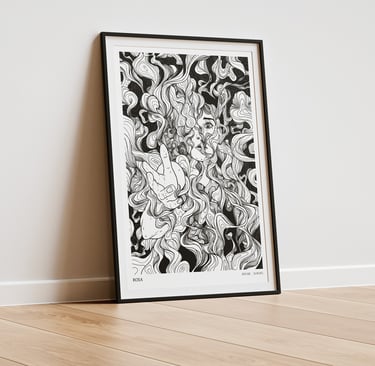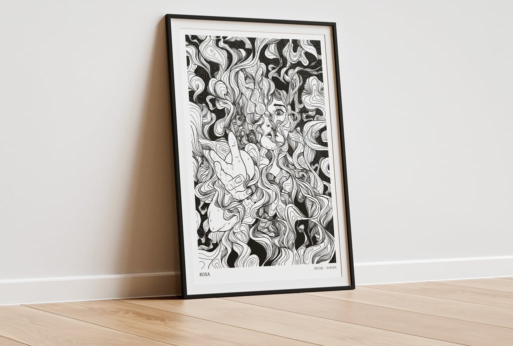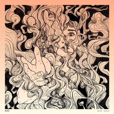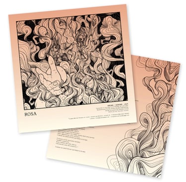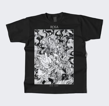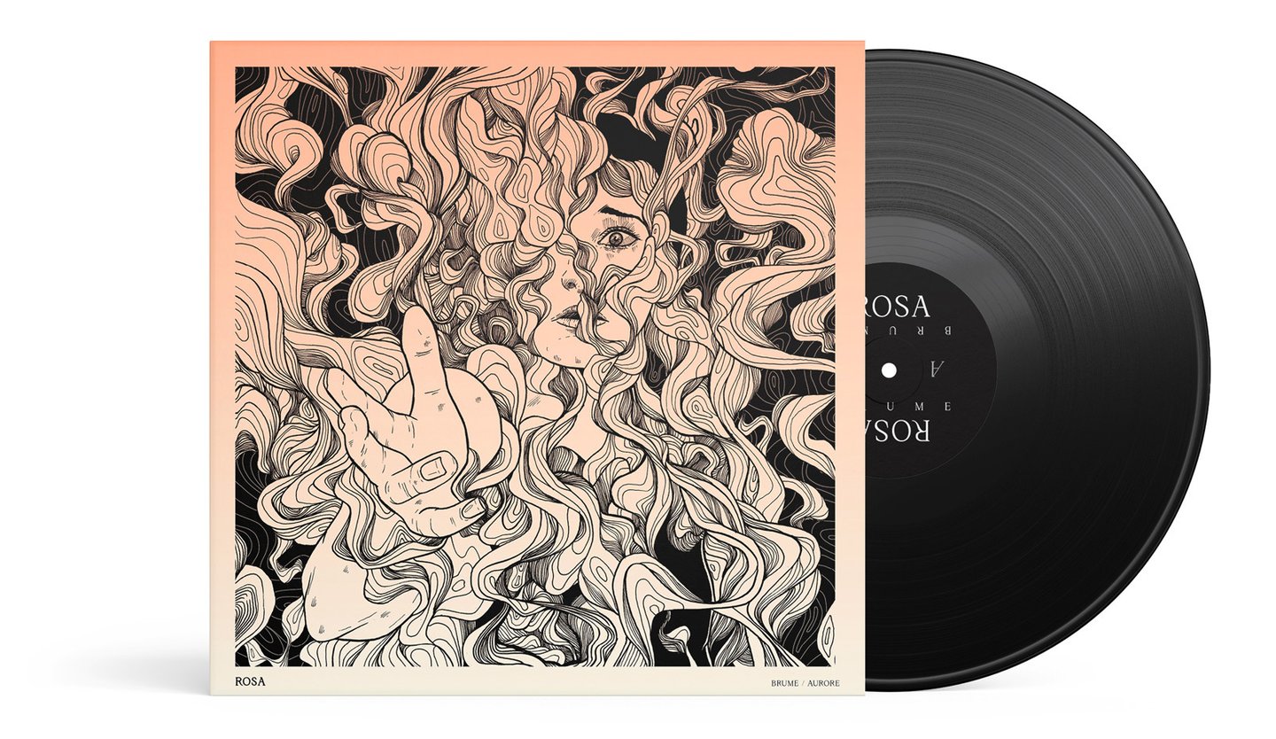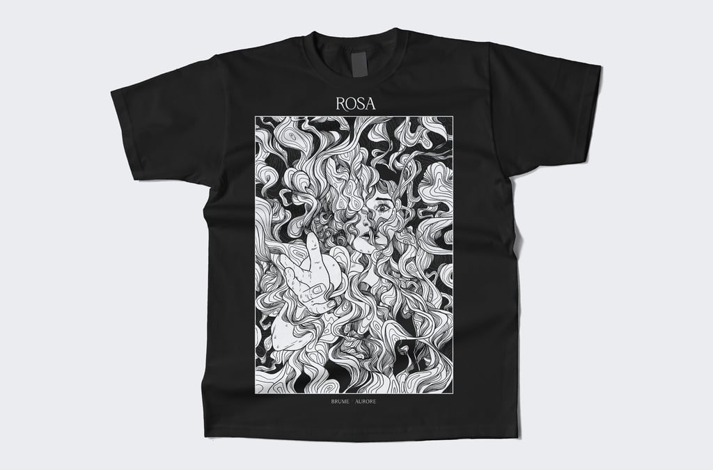 Rosa est un groupe de post-rock, post-hardcore, screamo français. Leur musique est intense, entre calme et tempête mais toujours sensible. La demande technique pour le visuel était qu'il soit déclinable en sérigraphie 1 couleur. La demande esthétique portait sur une thématique autour de la brume. En m'appuyant sur les paroles et leur univers musical, j'ai proposé cette illustration, une personne semblant demander de l'aide, prise dans les tourmentes d'une fumée étrange.